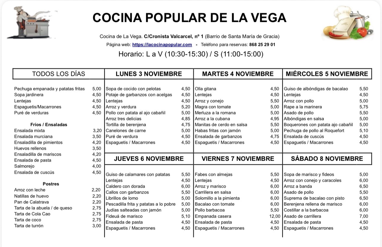 Recuerda que este es nuestro nuevo establecimiento en calle Cronista Valcarcel, nº 1. Si quieres consultar el menú de la Cocina del barrio del Carmen, haz clic aquí.